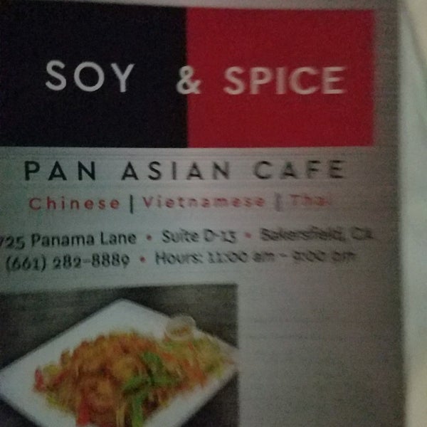 . . Bakersfields Favorite Authentic Asian Restaurant. Soy Spice is a casual cafe that offers up the freshest ingredients and spices with authentic Chinese Thai and.